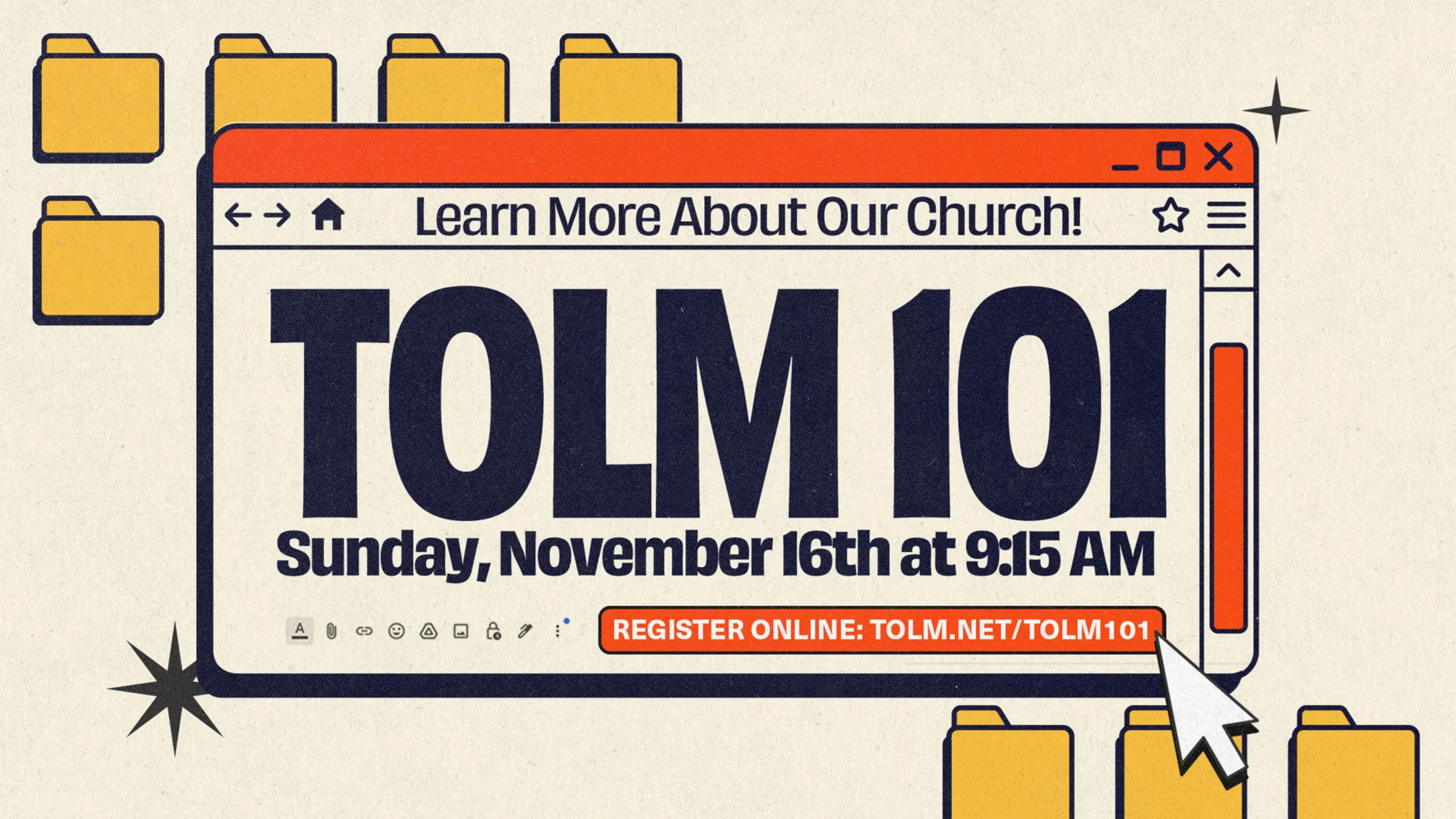 Interested in learning more about Tree of Life Ministries? Join TOLM 101 for an in-depth look at the church’s history, leadership structure, and doctrines. You’ll also have the chance to tour the campus and witness firsthand how God is working through TOLM.