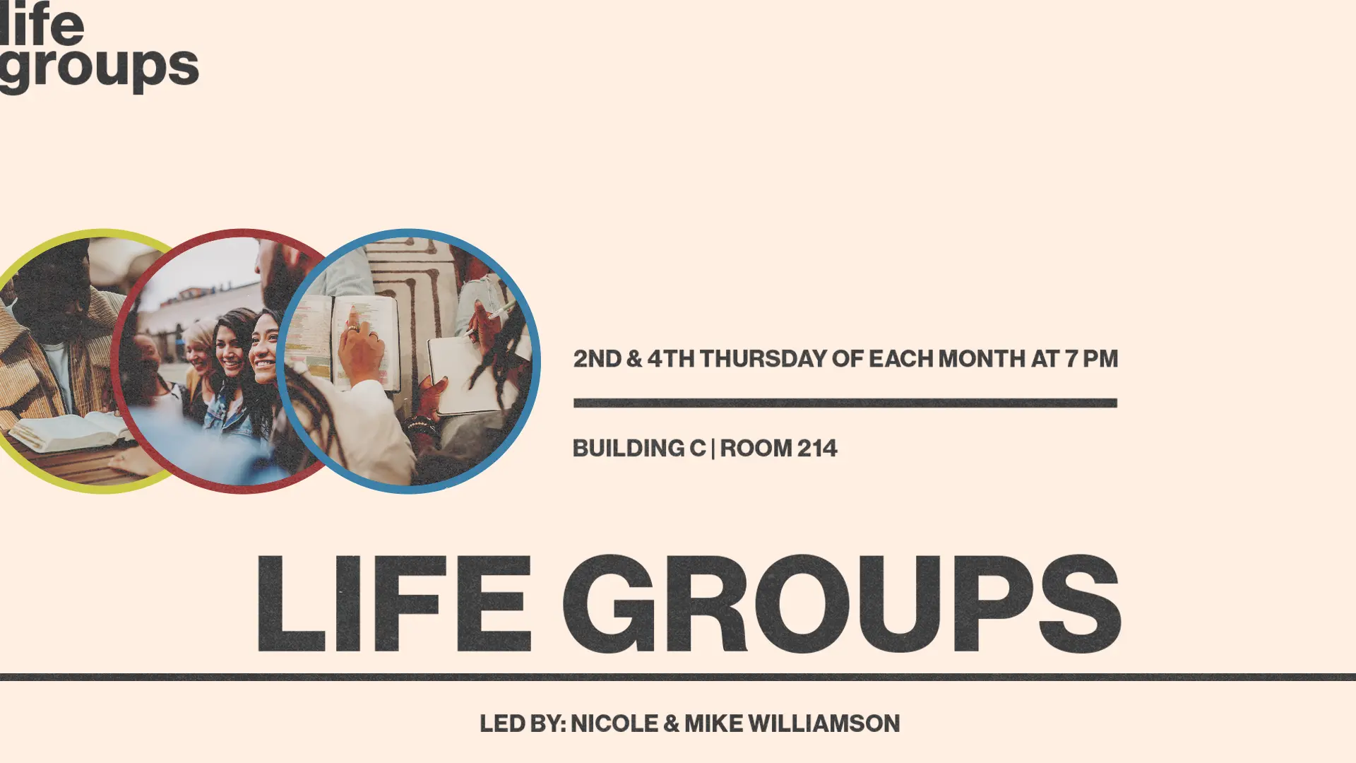 Life groups, led by Nicole and Mike Williamson, build a strong community for the Kingdom of God through encouragement, truth, and prayer. By coming together to study God’s Word, we sharpen one another and actively fulfill the Great Commission to make disciples.